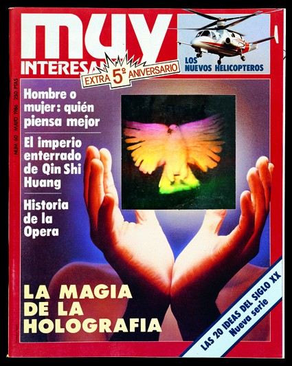El primer anuncio holográfico apareció en esta portada: el holograma de una paloma atravesaba la cubierta.Muy Interesante cumple 30 años