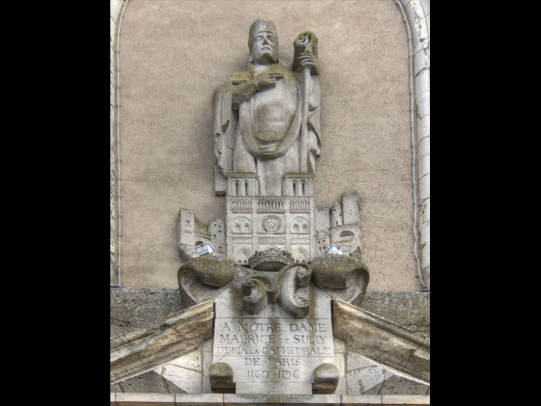 La construcción de la catedral de Notre Dame se debe al obispo Maurice de Suly, quien propone demoler la antigua iglesia de Saint-Étienne y reagrupar las funciones de iglesia del obispo, iglesia de los cánones y baptisterio mediante la reconstrucción de una catedral dedicada a la Virgen María (Nuestra Señora o Notre Dame), un proyecto urbano gigantesco, que duraría casi dos siglos.
