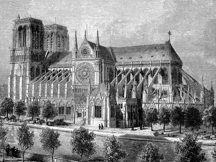 Maurice de Sully propone entonces edificar Notre Dame (Nuestra Señora, dedicada a la virgen María), una de las obras de arquitectura medieval del gótico temprano más hermosas y relevantes de la historia. Su construcción tardaría 180 años, y a lo largo de su existencia, la catedral sufrió varias remodelaciones y ampliaciones, pero también destrucciones. Salió asombrosamente bien parada de las dos contiendas internacionales, Primera y Segunda Guerra Mundial (los nazis fueron benevolentes con ella).