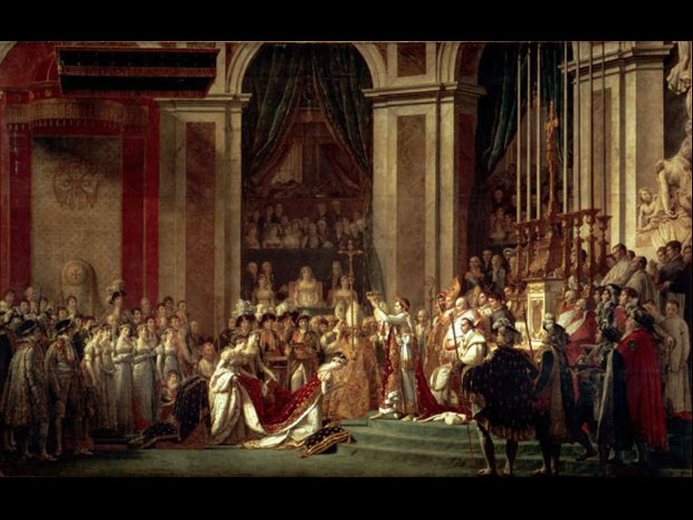 El 2 de diciembre de 1804 Napoleón es proclamado emperador de la República, líder de la revolución y coronado con el laurel por el Papa Pío VIII, durante una ostentosa ceremonia en la catedral, símbolo de su poder y autoridad.