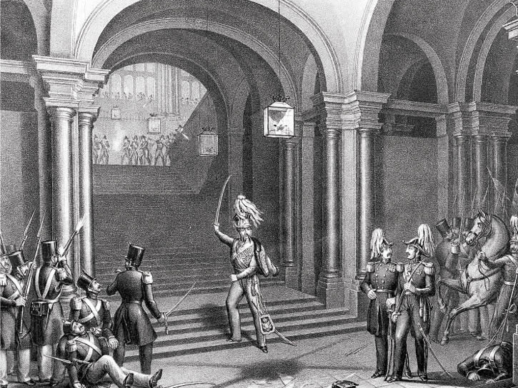 Diego de León y Navarrete fue un militar cordobés que llegó al cargo de teniente general gracias a su arrojo en combate y a sus dotes de liderazgo. Asumió la capitanía de una compañía de caballería y fue enviado al norte de la península, donde participó en la Primera Guerra Carlista y destacó tanto que se le concedió la Cruz Laureada de San Fernando. En 1838 fue nombrado virrey de Navarra y en 1841 participó en el levantamiento moderado de O’Donnell contra la regencia de Baldomero Espartero. Diego de León intentó tomar el Palacio Real, pero tuvo que retirarse y acabó siendo apresado, juzgado y fusilado.