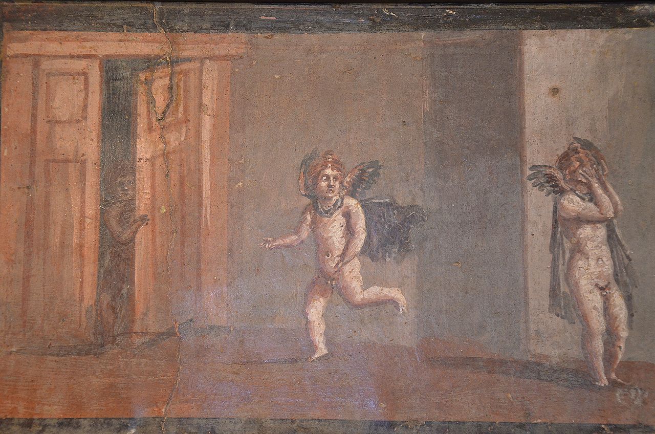 El juego del escondite tiene orígenes muy antiguos, como demuestra este fresco romano en el que varios cupidos se entretienen ocultándose y buscándose.