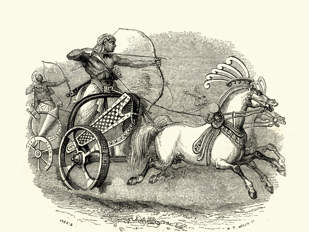 Hacia 1650 a.C., Egipto fue invadido por los hicsos –también llamados “príncipes del desierto”– llegados del este, que arrollaron sus defensas gracias a dos armas revolucionarias: los carros tirados por caballos y el arco compuesto, que era capaz de duplicar el alcance del arco convencional. Se abrió con ello el llamado Segundo Período Intermedio y los invasores no fueron expulsados del Bajo Egipto hasta 1537 a.C., cuando se inició el llamado Imperio Nuevo.