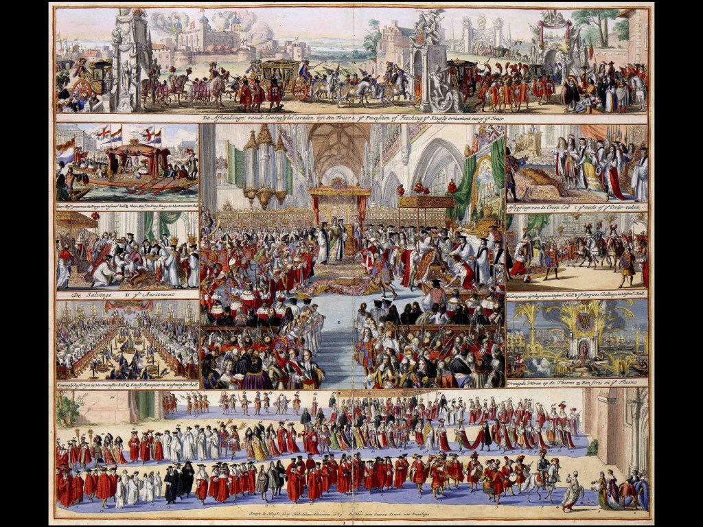 Cuatro años más tarde moría Cromwell, dejando como heredero a su hijo Richard. De débil carácter, fue solo un útil peón en los enfrentamientos internos. El empuje del ejército realista, que desde Escocia mandaba el general Monk, acabó en 1660 con la república e impuso la restauración de los Estuardo. Carlos II y su sucesor y hermano, Jacobo II, nunca dejaron de pugnar con el Parlamento, pero los hechos del inmediato pasado no habían sido en vano y la relación entre los dos poderes ya no sería la misma. Así, en 1688 y ante la posibilidad de que un heredero católico sucediera a Jacobo, los parlamentarios derrocaron a este –en la llamada Revolución Gloriosa o Incruenta– y coronaron al estatúder holandés Guillermo de Orange, casado con una hija del depuesto rey, María II. A cambio del trono, los nuevos monarcas aceptaban una Declaración de Derechos a favor del Parlamento. Nacía así una monarquía constitucional basada en el principio del contrato entre el monarca y los representantes del reino, y desaparecía con ella la monarquía de origen divino. Además, una Ley de Tolerancia en materia religiosa sería enseguida el más decisivo instrumento de desarrollo de una sociedad más libre que las hasta entonces conocidas. La pionera Inglaterra había abierto el camino.