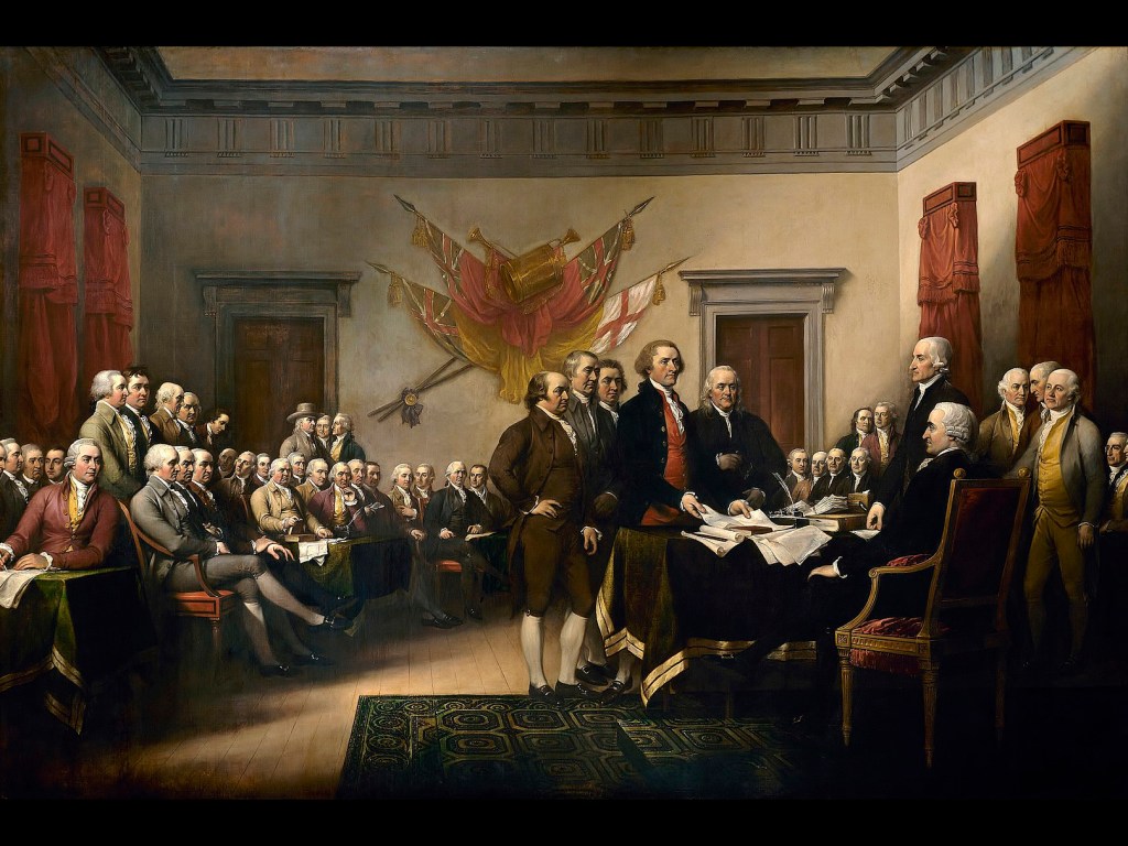 Los episodios sangrientos comenzaron a decidir la escena y George Washington, comandante en jefe del Ejército Continental, se convirtió en el protagonista de la movediza situación. El 4 de julio de 1776, los 56 delegados del Congreso Continental de Filadelfia firmaron la Declaración de Independencia de los Estados Unidos de América del Norte. Estos estaban constituidos en ese momento inicial por los territorios de los actuales estados de Carolina del Norte, Carolina del Sur, Connecticut, Delaware, Georgia, Maryland, Massachusetts, New Hampshire, Nueva Jersey, Nueva York, Pensilvania, Rhode Island y Virginia.
