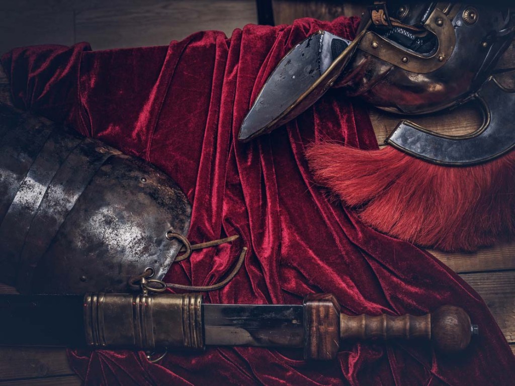 Si bien es cierto que muchos elementos de la cultura romana derivan o guardan relación con la Antigua Grecia, en el ámbito militar Roma desarrolló unas características que le convirtieron en el imperio más poderoso de su tiempo. En la guerra, Roma basó sus planes en el uso de una infantería pesada dividida en legiones (grupos de 4 200 hombres) que iban equipados con armadura metálica integral, un gran escudo rectangular con el que avanzaban en una formación blindada y una espada recta y corta llamada gladius hispaniensis. Esta arma fue bautizada así debido a que se inspiraba en las hojas hispanas y utilizaba el excelente metal de la península Ibérica y su reducido tamaño y forma de punzón la convertían en el objeto perfecto para manejar junto al escudo y en un arma de choque letal.