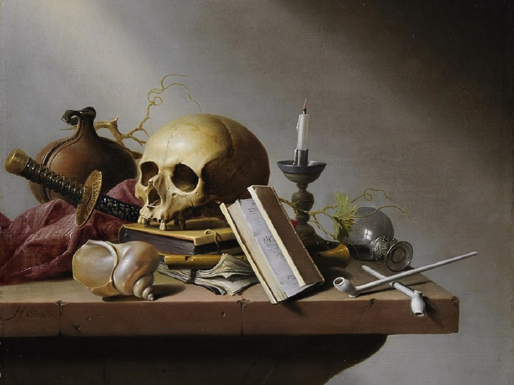 La vanitas es la pintura de las ruinas, del humo y de las velas apagadas. Estas composiciones pictóricas que florecieron especialmente durante el período del Barroco, con su abundancia de calaveras y naturalezas muertas, evocaban la fragilidad de la existencia. Estos motivos se cultivaron en una variedad de soportes y medios, desde frescos y grabados hasta lienzos e incluso objetos como copas, colgantes y abalorios. El mensaje que transmitían no admitía dudas: la muerte iguala a ricos y pobres.