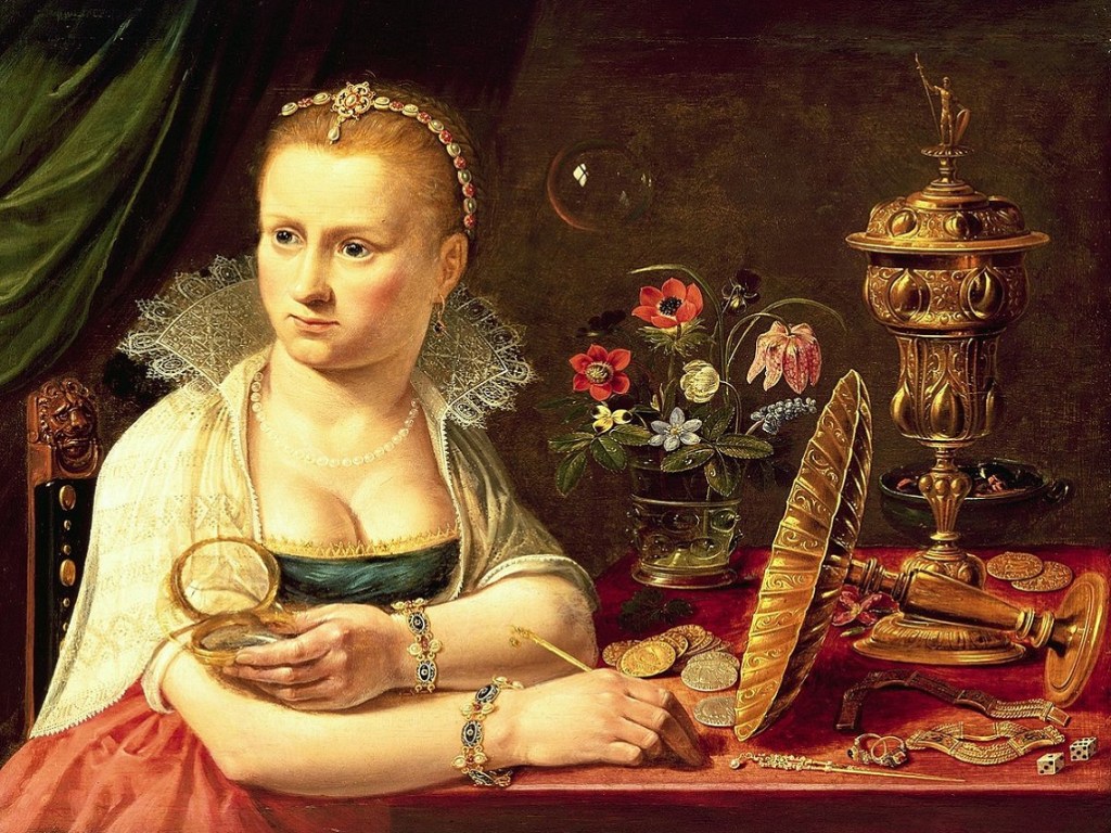 En la vanitas se incluyen motivos como las pompas de jabón, las mariposas y los cuchillos, las calaveras desdentadas y los ramos de flores para transmitir su mensaje. La vida frágil e interrumpida habla de la frivolidad, de la vanidad inútil y de los pecados a los que sucumbe el ser humano: el orgullo, la avaricia, los celos. El mundo en esta tierra es vano y pasajero frente a las promesas de vida eterna y las recompensas espirituales.