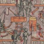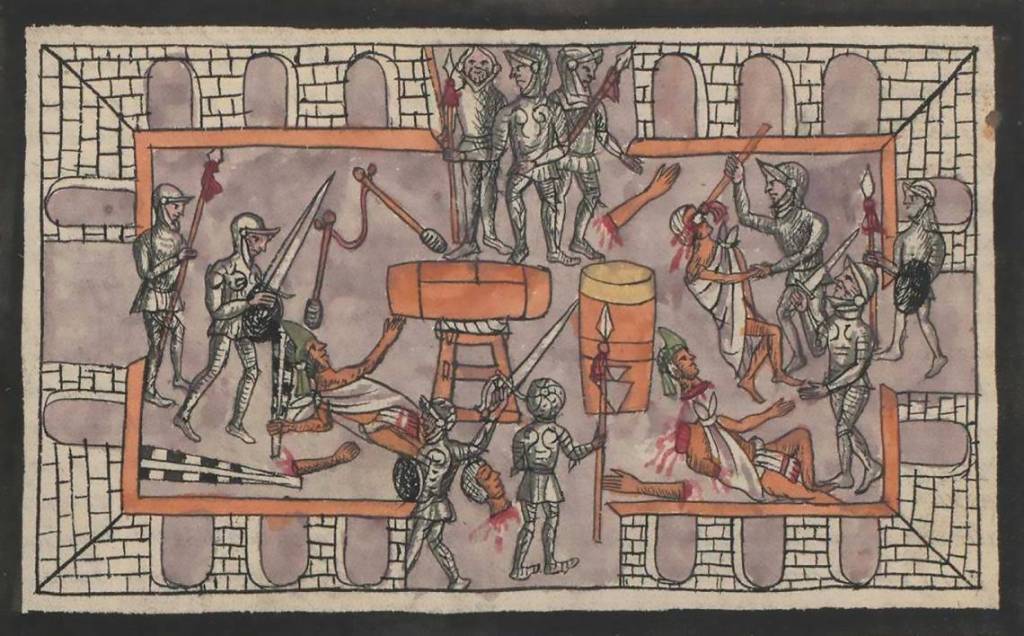 Tiempo después Bernardino de Sahagún recogió testimonios de la población local en el que se describen macabras acciones: “Pero a otros les dieron tajos en los hombros: hechos grietas, desgarrados quedaron sus cuerpos. A aquéllos hieren en los muslos, a éstos en las pantorrillas, a los de más allá en pleno abdomen. Todas las entrañas cayeron por tierra Y había algunos que aún en vano corrían: iban arrastrando los intestinos y parecían enredarse los pies en ellos. Anhelosos de ponerse en salvo, no hallaban a donde dirigirse”.