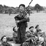 Este fue el mensaje que recibió William “Bill” Millin del oficial Simon Christopher Joseph Frasier, un excéntrico personaje conocido como lord Lovat. Imagina que vas a desembarcar en el infierno, una playa dominada por alemanes, armado únicamente con una estridente y llamativa gaita, vestido con una falda escocesa. Pues así fue el Día D para Millin. Ya en la embarcación, antes de llegar a la orilla, iba tocando: