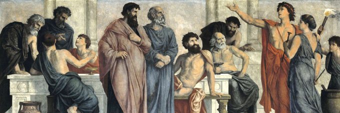 Sócrates muere en 399 a.C. bebiendo cicuta. Lo condena a muerte la Atenas democrática, tras un proceso legal en el que se le acusa de impiedad y de corromper a los jóvenes. Contribuye a ello que, en el año 423 a.C., el conservador Aristófanes lo caricaturizó en Las nubes mediante los clichés con los que los reaccionarios cargan contra las vanguardias intelectuales; entre ellos, adorar a dioses nuevos y corromper la moral. Sócrates lo negó. Famoso es el daimon socrático, una especie de divinidad personal que se le aparecía para prevenirlo de hacer algo. Más que en una relación personal con lo divino, la religión oficial de la ciudad consistía en una serie de ritos públicos, pero el daimon socrático ni era exclusivo del filósofo ni era incompatible con la religión pública. Es más, algunas fuentes han subrayado el estrecho vínculo de Sócrates con Apolo y su respeto por lo divino. En definitiva, la acusación encubre motivos políticos: es partidario de la aristocracia (aunque no en el sentido tradicional: deben gobernar los que demuestren ser los mejores, en definitiva, los más sabios, y no los que presuntamente lo sean a causa de su linaje) y contrario a procedimientos democráticos como la elección por sorteo. Asimismo, Sócrates es maestro de traidores como Alcibíades y frecuenta a oligarcas y tiranos como Critias. Tras la tiranía de los Treinta, se restaura la democracia y se concede una amnistía que impide represalias, por lo que la acusación contra Sócrates debe camuflar la voluntad de quitarse de encima –probablemente, el objetivo no era su muerte– a una figura contraria a la democracia y molesta para muchos.