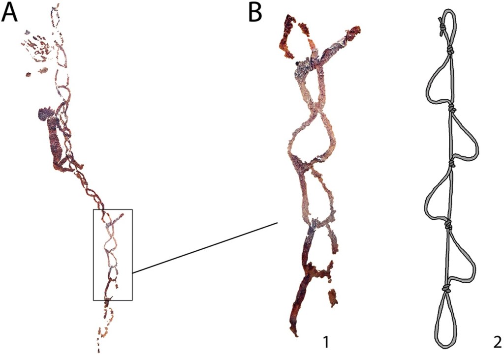 “Las pruebas directas o indirectas de la fabricación de cuerdas son escasas en la prehistoria europea. Sólo conocemos algunas referencias a restos del Paleolítico Medio o Superior, existiendo más ejemplos hacia el Holoceno. Los contextos arqueológicos de las cuerdas ofrecen poca información sobre sus posibles usos, ya que las actividades para las que se utilizan suelen ser arqueológicamente invisibles. Sin embargo, algunas tradiciones del arte rupestre arrojan algo de luz sobre usos potenciales que vale la pena explorar”.