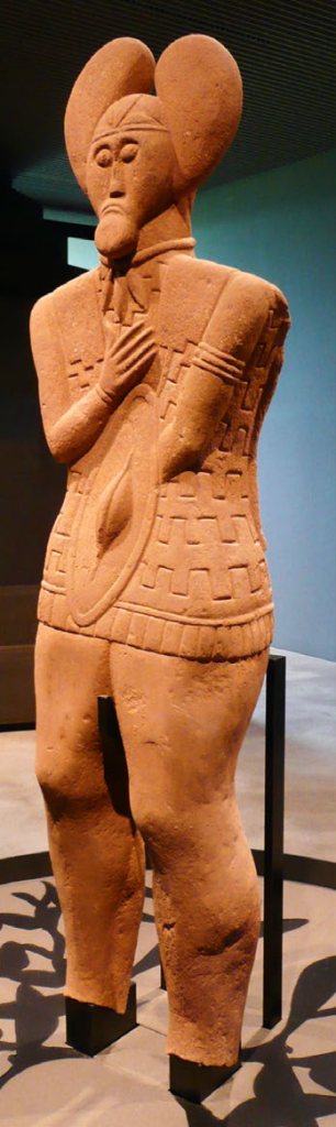 Esta pieza elaborada en arenisca conserva aún 1,86 m de altura, a pesar de que los pies se hayan perdido. En la cabeza luce un singular tocado, posiblemente de cuero, con dos protuberancias probablemente representando hojas de muérdago. Al cuello porta un torques con tres colgantes, mientras que en los brazos luce varios brazaletes, un anillo y un escudo pequeño oval con umbo metálico. En el costado derecho lleva una espada y el pecho aparece recubierto por una coraza. En su estilo representativo se percibe la influencia del mundo mediterráneo. Muy probablemente constituye la representación de un ancestro heroizado o un antepasado mítico