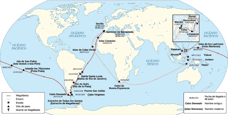 Los nativos de las islas más occidentales les acogen de manera muy distinta, y pronto los españoles se hacen al trato con los indígenas e intercambian cualquier cosa, desde cascabeles, gorros o pequeños espejos, por pescado, vino, higos, gallinas, arroz, coco y plátanos. De allí en adelante, la expedición comandada por Magallanes irá descubriendo y explorando isla tras isla, hasta fondear en territorios del rey Zubu, en las actuales Filipinas. Magallanes, hábil negociador y diplomático, no solo consigue convertir al rey nativo y a toda su familia al cristianismo, sino que además juran lealtad al rey de España. Ese acontecimiento, aparentemente un enorme éxito personal del navegante luso, es en realidad el momento en que su destino se torna en tragedia.