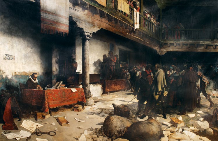 Cervantes, soldado en Lepanto, es retratado por Ángel Lizcano escribiendo en el patio de la toledana Posada de la Sangre. Foto: Museo del Prado.
