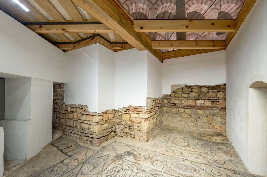 Durante estos trabajos, comprobó el estado de las cimentaciones de las columnas de la sala de oración, erigida entre los años 785 y 787. Bajo estos cimientos halló varios muros, que mostraban diversas orientaciones y aparejos, además de varios mosaicos, conservados parcialmente. En los rellenos de tierra que retiró, descubrió también varios elementos arquitectónicos de carácter decorativo que apuntan a su origen en un lugar de culto cristiano de cronología tardoantigua (siglos V-VII).