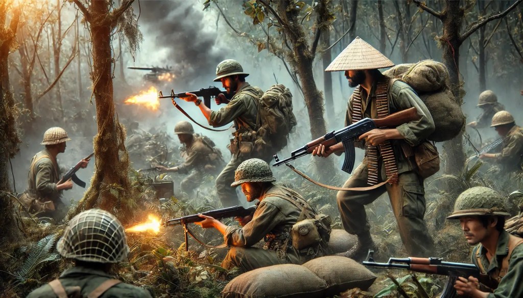El escenario de la guerra en Vietnam fue uno de los más desafiantes de la historia militar moderna. La selva vietnamita, con su densa vegetación y clima extremo, se convirtió en un enemigo más para las fuerzas estadounidenses. Este entorno inextricable no solo dificultaba el movimiento de las tropas, sino que también ofrecía al Vietcong el refugio perfecto para implementar sus tácticas de guerrilla. Las fuerzas estadounidenses, acostumbradas a un tipo de guerra más convencional, se encontraron en un terreno que conspiraba en su contra, mientras que el Vietcong, familiarizado con cada rincón de la selva, utilizaba este conocimiento a su favor, transformando la naturaleza en un aliado estratégico.