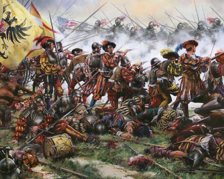 No fue así. Los arcabuceros españoles formaron cuatro hileras y, en tandas sucesivas, para no detener jamás el fuego, descerrajaron descarga tras descarga a la infantería suiza. Aquella táctica se adelantó a la que, a la postre, haría famoso a Mauricio de Nassau. «La escopetería y arcabucería española comienza a hacerles fuego, con tal suerte que, antes que a las manos viniesen, más de dos mil cayeron », escribió el cronista Martín García Cerezeda. Los lansquenetes imperiales hicieron el resto.