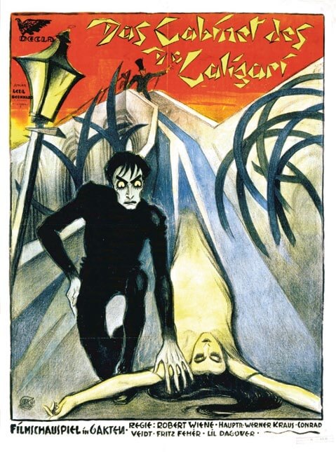Algo similar ocurre con el póster del filme El gabinete del doctor Caligari (Robert Wiene, 1920), que igualmente presenta una estrecha calle a cuyos lados los árboles se retuercen como en tantas obras de Van Gogh y todos los elementos están formados por grandes masas de color homogéneas. Quizás este último caso sea menos evidente que el anterior y es incluso posible que por la perspectiva recuerde más a la obra de Edvard Munch que a la de Van Gogh.