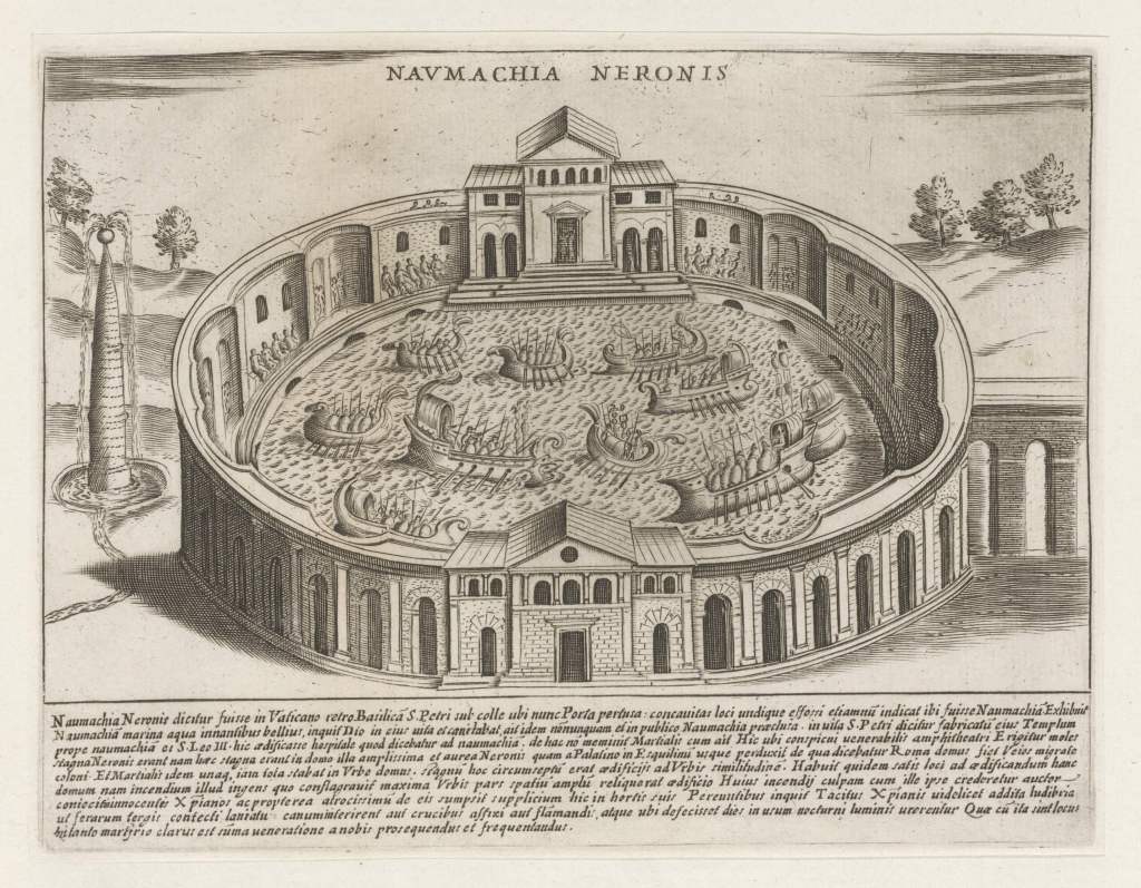 En la antigua Roma, las naumaquias eran batallas navales convertidas en espectáculos fruto del ingenio y el poder imperial. En estos eventos se enfrentaban auténticas flotas en enormes escenarios acuáticos construidos expresamente, desde piscinas gigantescas hasta el propio Coliseo inundado. Más allá del espectáculo, las naumaquias eran una poderosa herramienta de propaganda, manifestaciones de la grandeza y habilidad técnica de Roma, diseñadas para exaltar y recordar las victorias militares y para reafirmar la majestad y autoridad del emperador ante el pueblo romano.