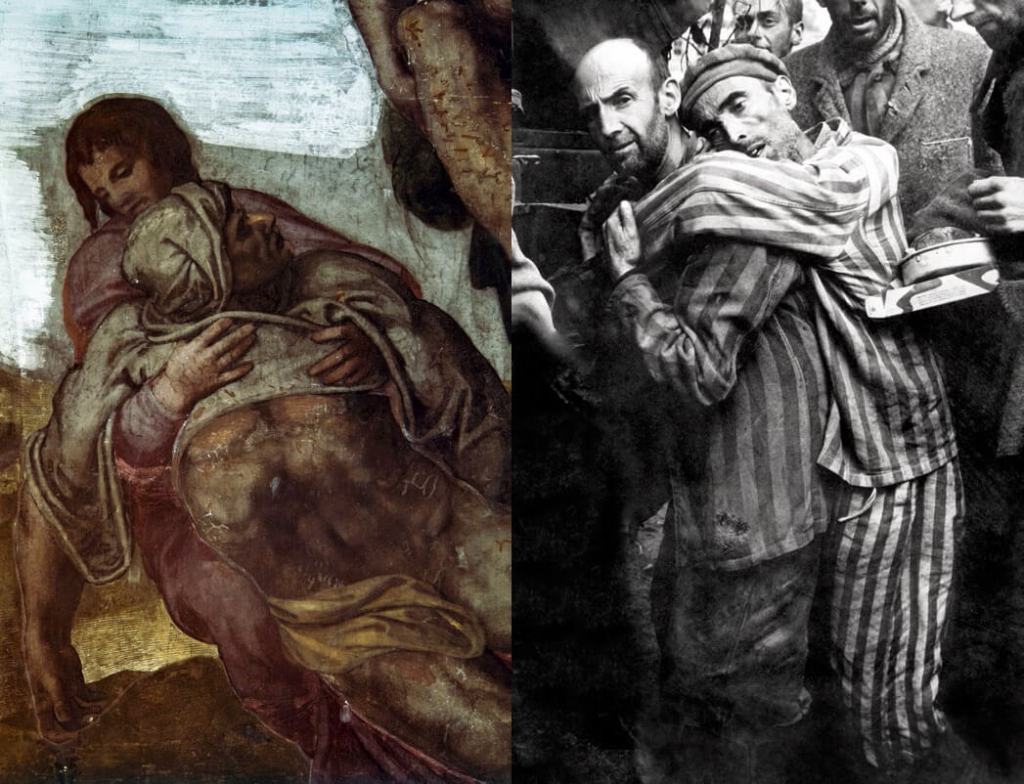 Mucho tiempo más tarde, en el siglo XX, se produjo uno de los episodios que cambiaron la condición humana, que fue la Shoah y el genocidio liderado por Hitler que se produjo en los campos de concentración y exterminio entre 1933 y 1945. Auschwitz —como símbolo de estos inhumanos espacios— representa la destrucción del hombre y de la identidad humana, además de ser la culminación de aquel horror premonitorio que se anunciaba en el Juicio Final, aflicción que Primo Levi usó de parangón con lo sucedido en Auschwitz.