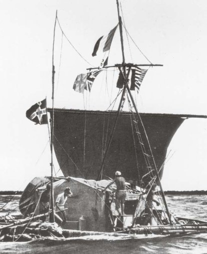 Noruego era también otro gran aventurero del siglo XX, Thor Heyerdahl. Estaba empeñado en demostrar que hubo una gran ola migratoria entre los mares del Sur y Sudamérica hacia el siglo XII; ello explicaría las coincidencias rituales a un lado y otro del océano o las similitudes entre algunas construcciones de Tiahuanuaco (Bolivia) y las de muchas islas polinesias.