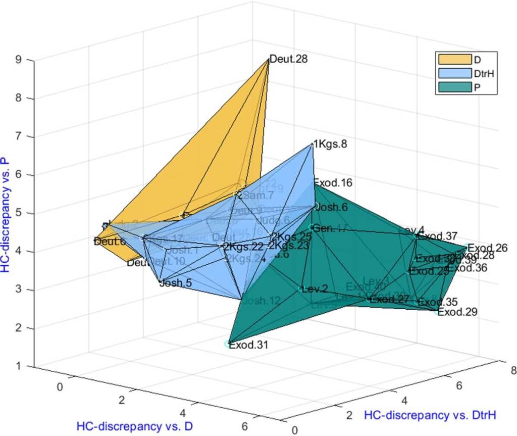 Los resultados fueron claros. Los textos de D y DtrH comparten una fuerte cercanía estilística, mientras que los textos sacerdotales (P) se separan notablemente. Esta diferencia no sorprende a los expertos en estudios bíblicos, pero lo novedoso es que se ha confirmado ahora mediante una herramienta estadística reproducible y transparente.