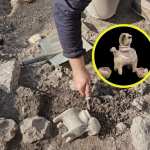 En una capa superior del yacimiento, correspondiente a unos 3.300 años de antigüedad —pleno apogeo de la Edad del Bronce Tardío—, emergieron otros elementos igual de sorprendentes, aunque más ligados a lo espiritual que a lo doméstico. Un conjunto de objetos cerámicos cuidadosamente enterrados llamó la atención del equipo: una figura con forma de carnero, pequeñas vasijas, tazones y jarras importadas de Chipre.