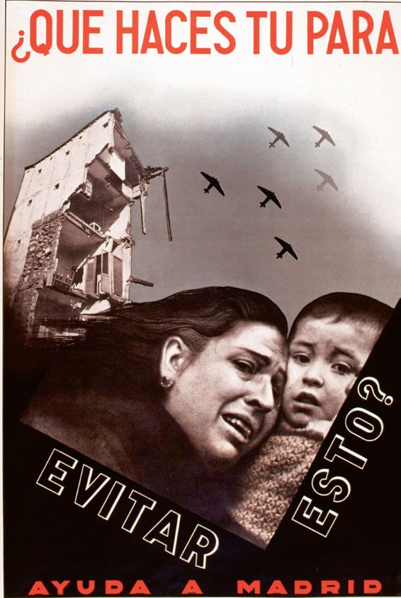 En el cartelismo a partir del 37, las antiguas heroínas viriles se metamorfosean en viudas atemorizadas o asesinadas por bombas que llevan la esvástica dibujada. A priori, el bando republicano muestra una actitud progresista frente a la objetualización de la mujer –que tenía voto solo desde 1931–, pero finalmente se convierten ambas en un elemento manejado por hombres que dirigen una guerra en la que la mujer es una fuerza secundaria... salvo en la batalla de la propaganda, claro.