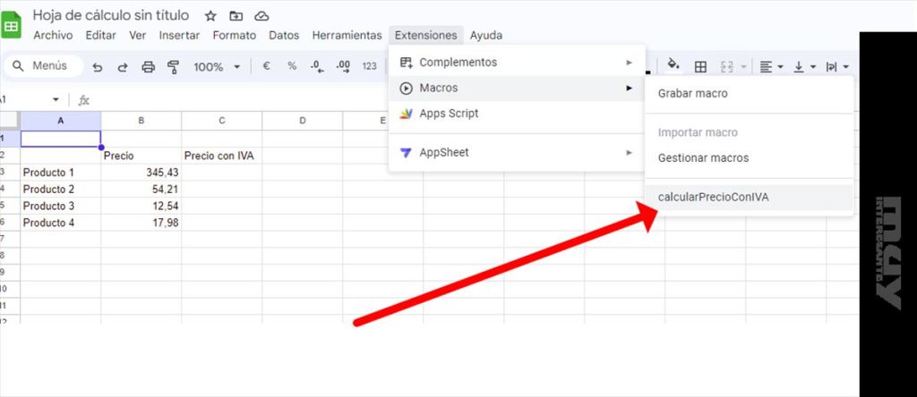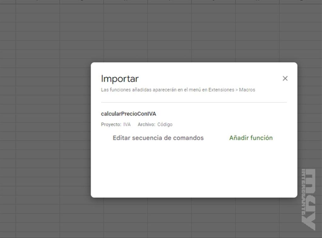 Vuelve a tu hoja de Google Sheets e importa la Macro creada