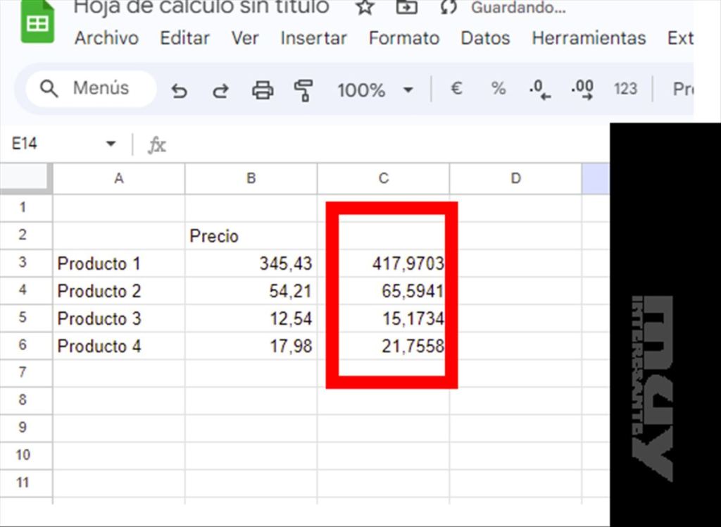 Verás que la tarea definida se realiza automáticamente en tu hoja de cálculo.