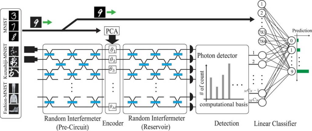 El equipo desarrolló un sistema llamado QORC (Quantum Optical Reservoir Computing). En él, primero se reduce el tamaño de los datos de entrada (imágenes en escala de grises) usando una técnica clásica llamada análisis de componentes principales (PCA). Luego, esa información reducida se codifica en fotones individuales, que se hacen pasar por una red óptica aleatoria que actúa como un "reservorio cuántico". El resultado final es una distribución de probabilidades que se combina con los datos originales y se analiza con un clasificador lineal muy sencillo. Lo destacable es que solo el clasificador necesita ser entrenado: el resto del sistema cuántico funciona sin ajustes específicos.