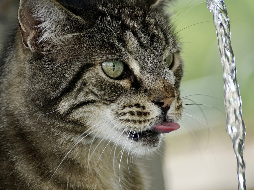 La tres funciones de la áspera lengua del gato son triturar carne, beber agua y acicalarse.