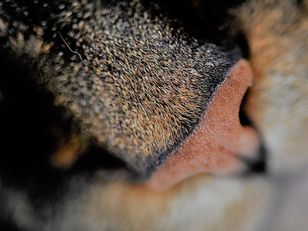 Por su parte, el tacto podríamos casi definirlo en los bigotes del gato, son su órgano sensorial por excelencia ya que pueden moverlos y detectan la presión, la dirección, la velocidad… Incluso las corrientes de aire.
