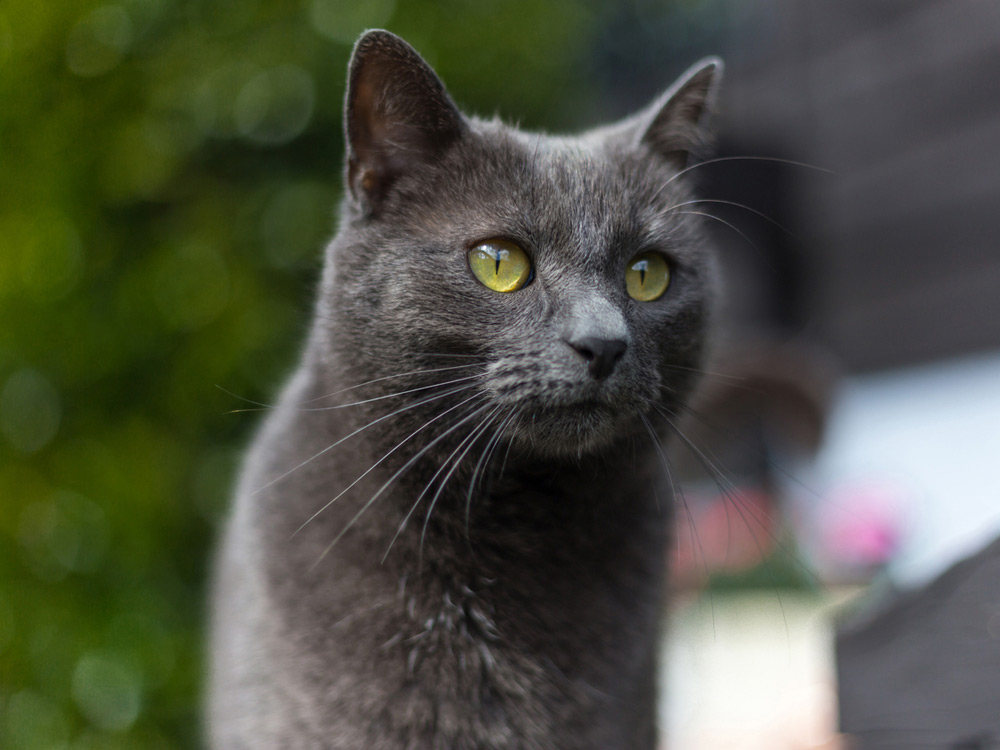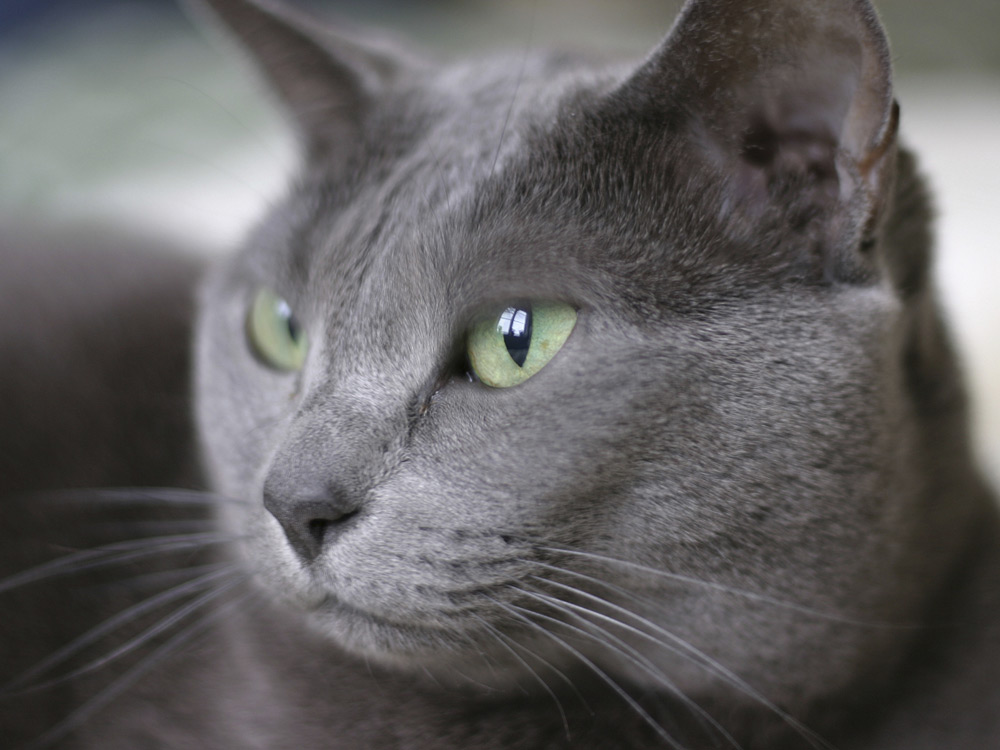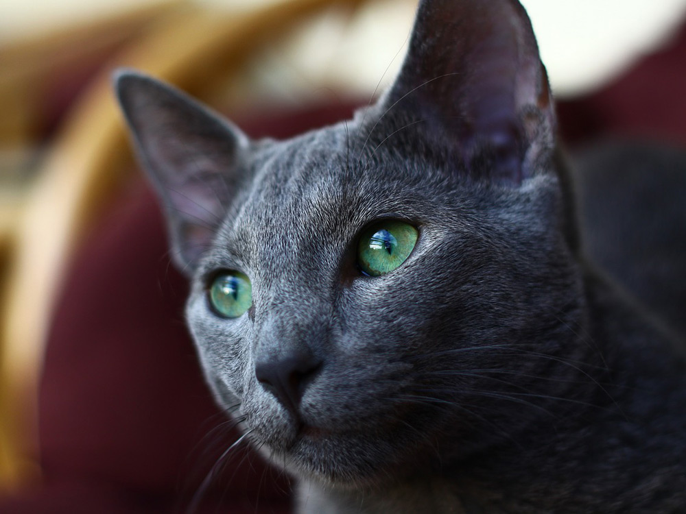 El gato azul ruso posee unos ojos de un potente color verde esmeralda.