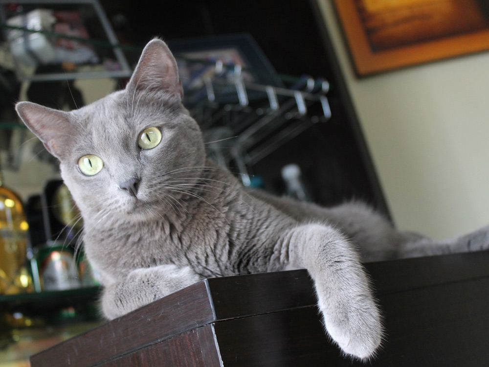 Otra de las características más notables del azul ruso es su gran inteligencia. Capaz de aprender trucos, es diestro en abrir puertas y ventanas, aspectos que en un principio pueden divertir pero que nos obligarán a tomar precauciones extra para evitar accidentes como caídas al vacío.
