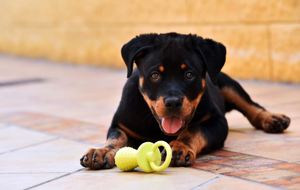Por otro lado, también es importante que le des a tu rottweiler juguetes que mantengan su mente activa. De esta manera, estarás evitando que se aburra y, por ende, que haga travesuras en casa. Una buena opción son los juguetes que pueden rellenarse con comida o golosinas.