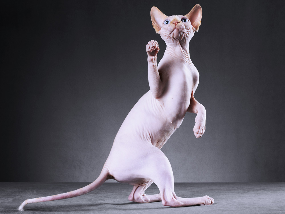 La ausencia de pelo en los gatos egipcios no es un defecto ni falta de salud sino una mutación natural. Lo que mucha gente no sabe es que en realidad sí que poseen una capa finísima de pelo que apenas podemos apreciar con nuestros ojos.