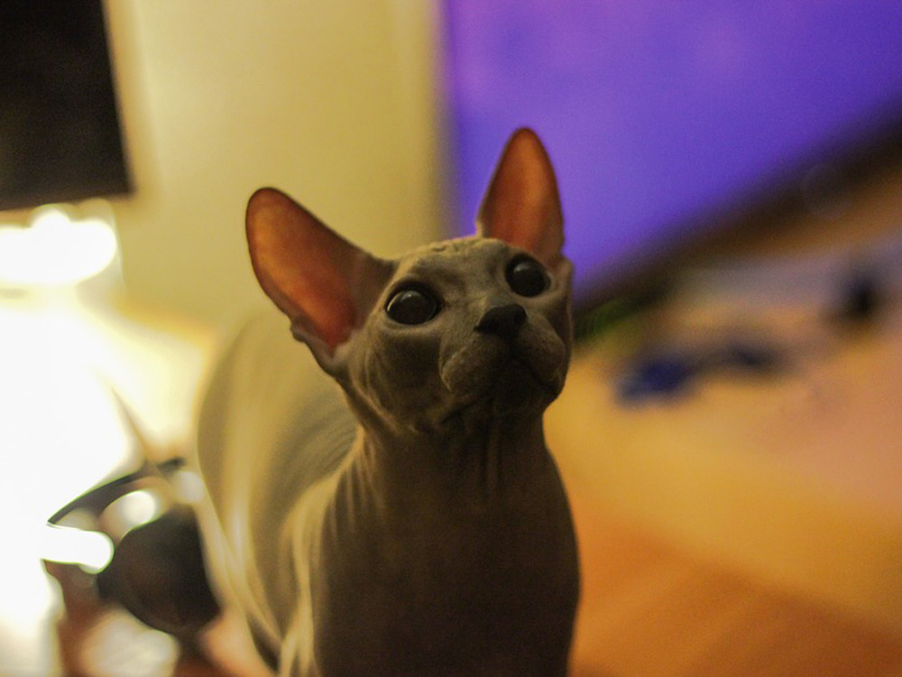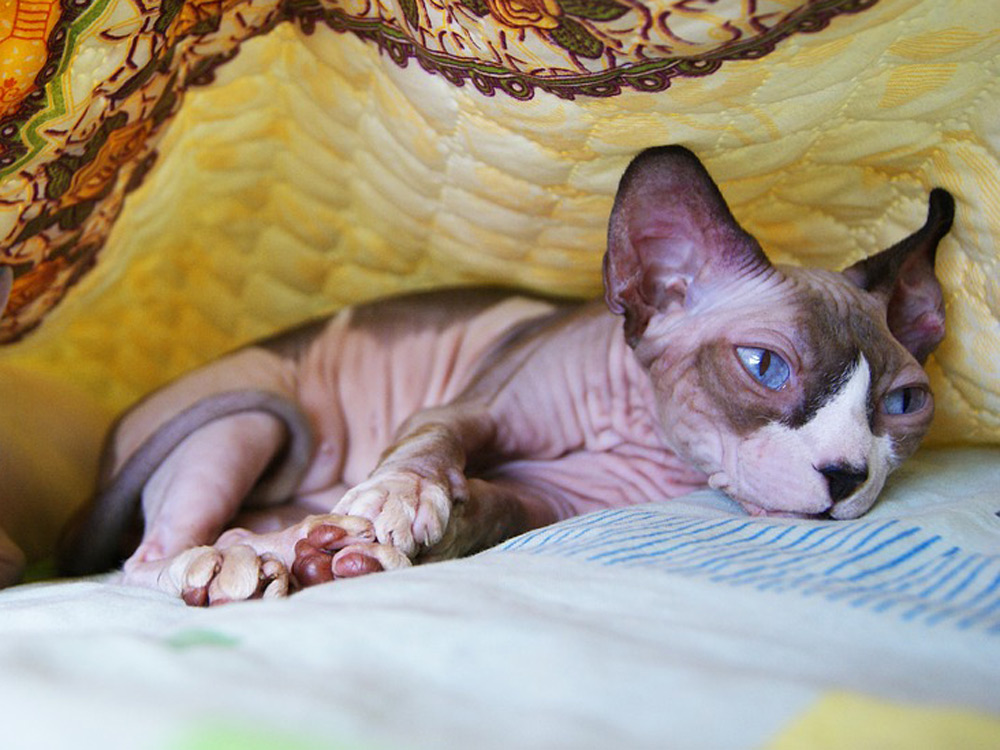 Son animales muy inteligentes y curiosos que siempre encontrarás investigando rincones de la casa o trasteando con alguno de los muebles. No obstante, les gusta estar en lugares tranquilos y cálidos, sobre todo en invierno cuando comienzan a tener frío por la ausencia de pelo, rasgo distintivo de la raza.
