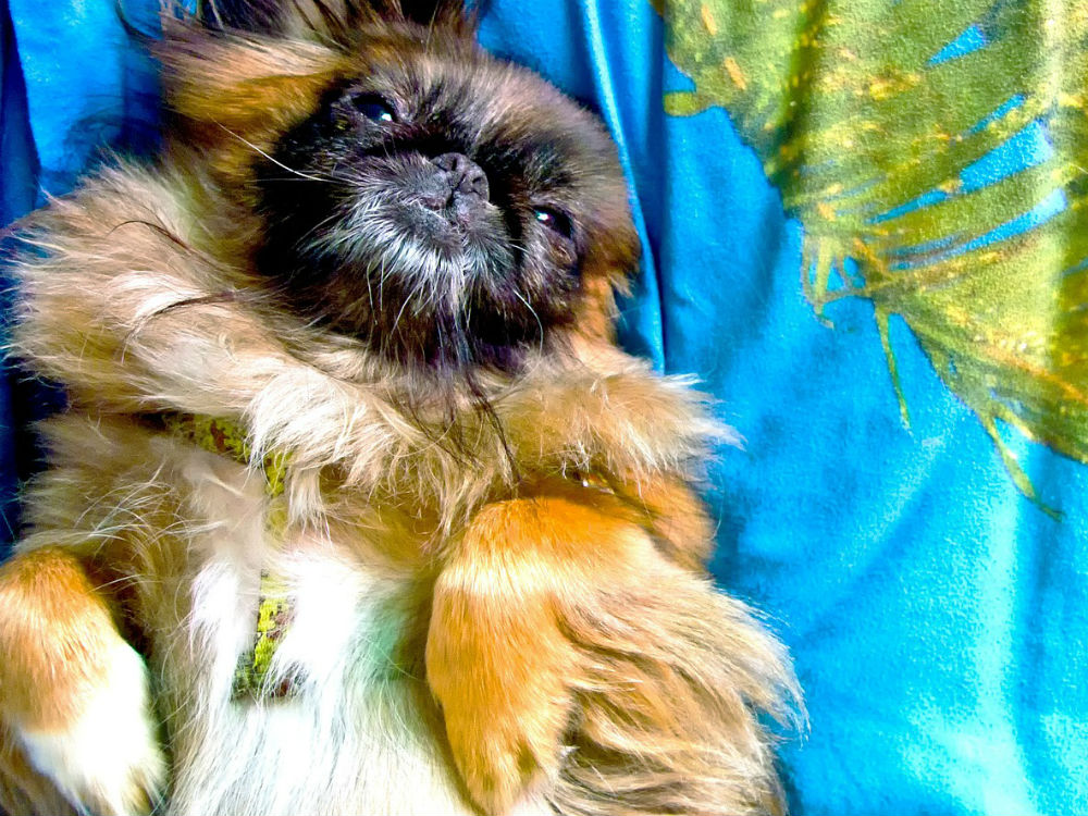 El pelo del pequinés es bastante largo y liso y sobre todo muy abundante en las orejas en el abanico de la cola en los pies y en la parte trasera de las patas.