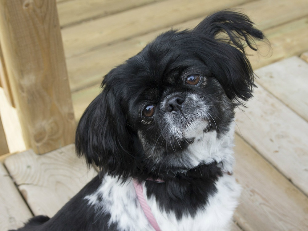 La apariencia del pekinés es muy pequeña, no pesa más de unos 5 kilogramos ni será más alto de los 25 centímetros. Lo que sí tiene grandes son los ojos, que son siempre oscuros y tienen una mirada avispada. Sus patas son cortas aunque los huesos no son débiles y terminan en unos pies algo más grandes que la proporción del cuerpo. El pelo es muy largo y liso, en las orejas cuelga abundante y podemos encontrarlo de todos los colores, teniendo también varios de ellos a la vez pero nunca encontraremos pequinés de color albino ni de color marrón hígado.
