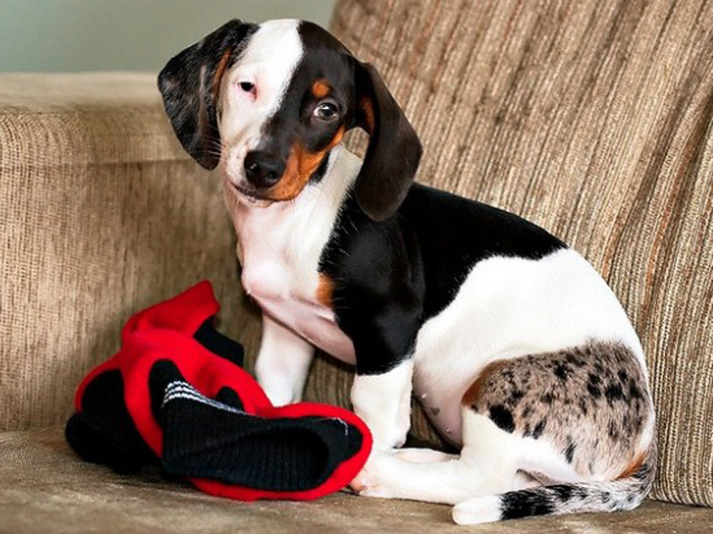 Este cachorro de teckel tiene un patrón de colores bastante inusual en la raza. Foto: louiebaur (Reddit).