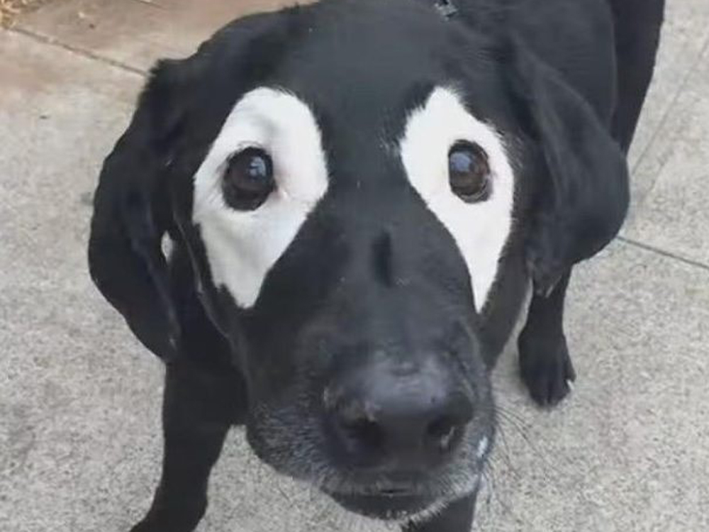 Parece que este perro lleva una máscara de ladrón, listo para robar... comida, seguro. Foto: MillionBeast (Reddit).