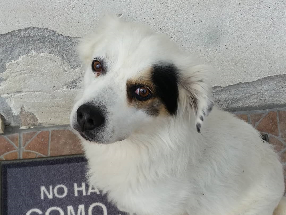 Al hecho de ser un perro albino le añade esa mirada de sospecha y resulta un perro peculiar... al que queremos abrazar.