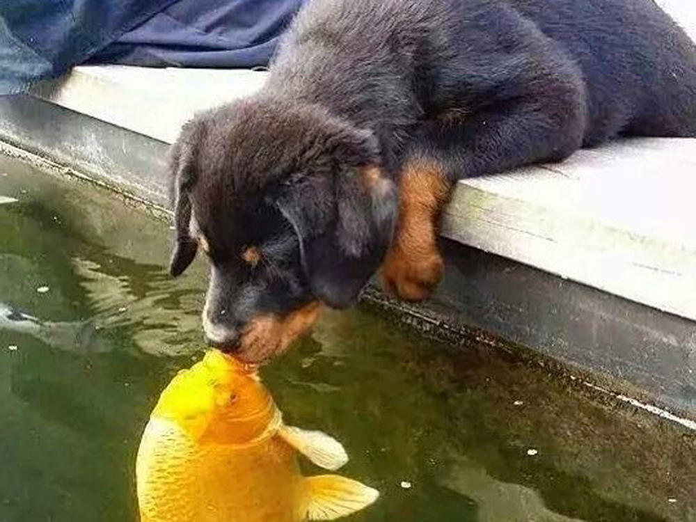 El amor no entiende de fronteras y este cachorrito lo sabe. ¡Se lleva genial con este pez! Foto: IG @puppykittylovezz.