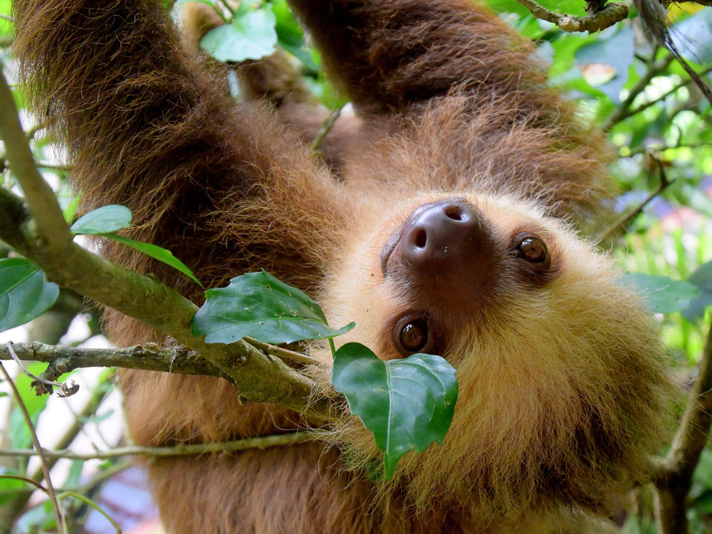 Este simpático animal, con cara de cansancio perpetua, duerme colgado de las ramas de los árboles un total de 20 horas al día.