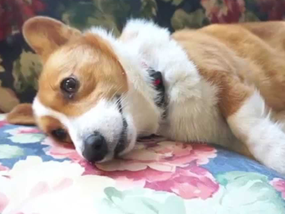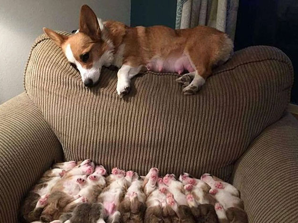"Es la primera vez que me siento en todo el día", añadió la cansada corgi madre.