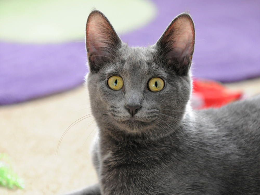 El gato korat es una de las cuatro razas que presentan el pelo azul junto al gato británico (el de esta imagen), el gato chartreux y el gato azul ruso.
