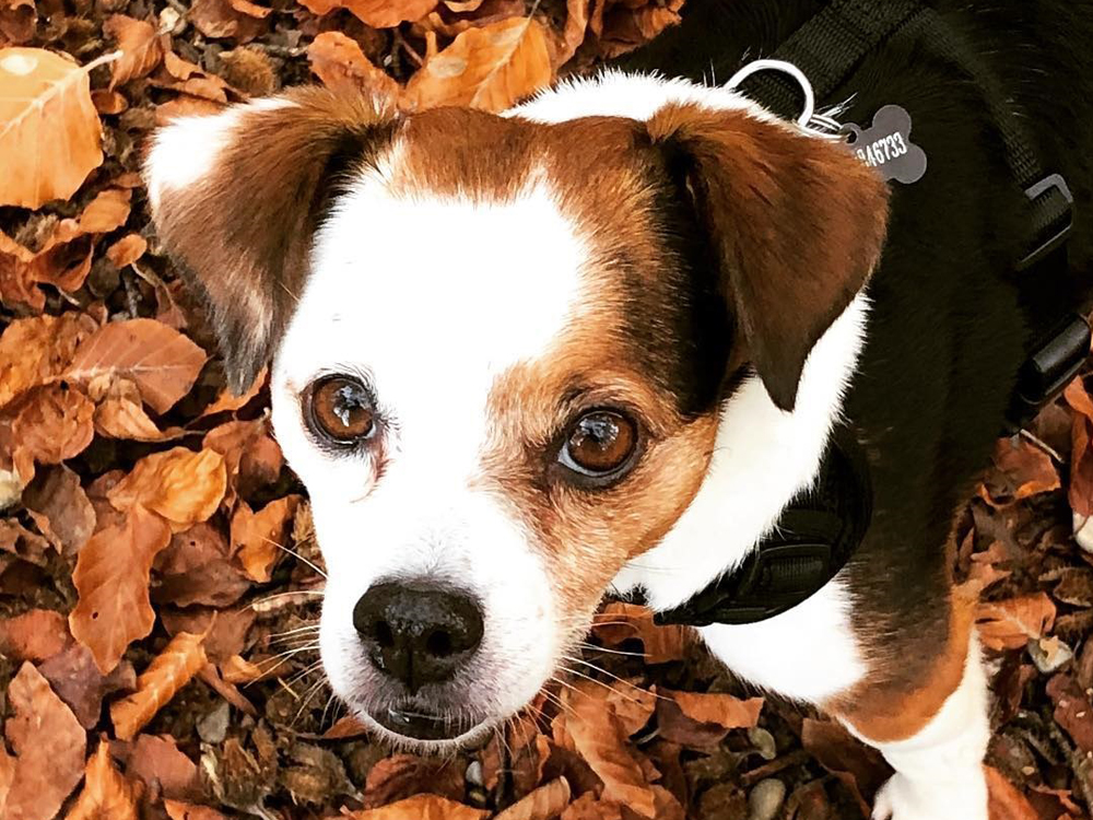 “¡Mira, tengo el mismo color que las hojas de los árboles!”, le dice este perro a su dueño. Vía Instagram: @carocombrinck