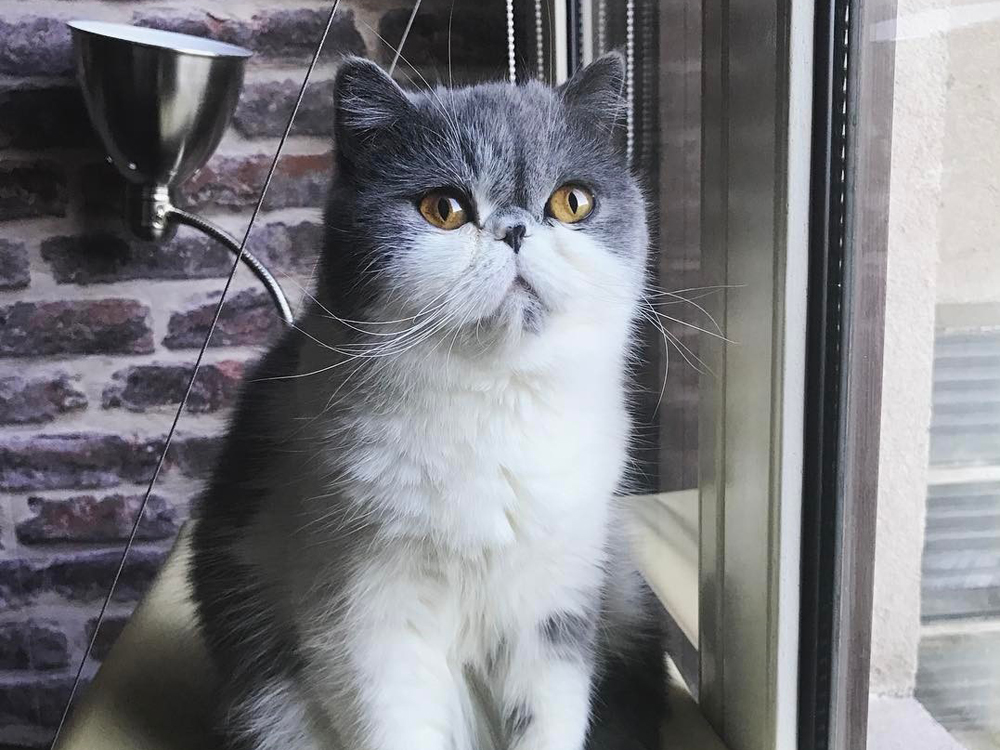 Su pelo gris y blanco trasmite calma y nos recuerda al invierno. ¡Dan ganas de abrazarle! Vía: Instagram @lilyblue_exoticshorthair